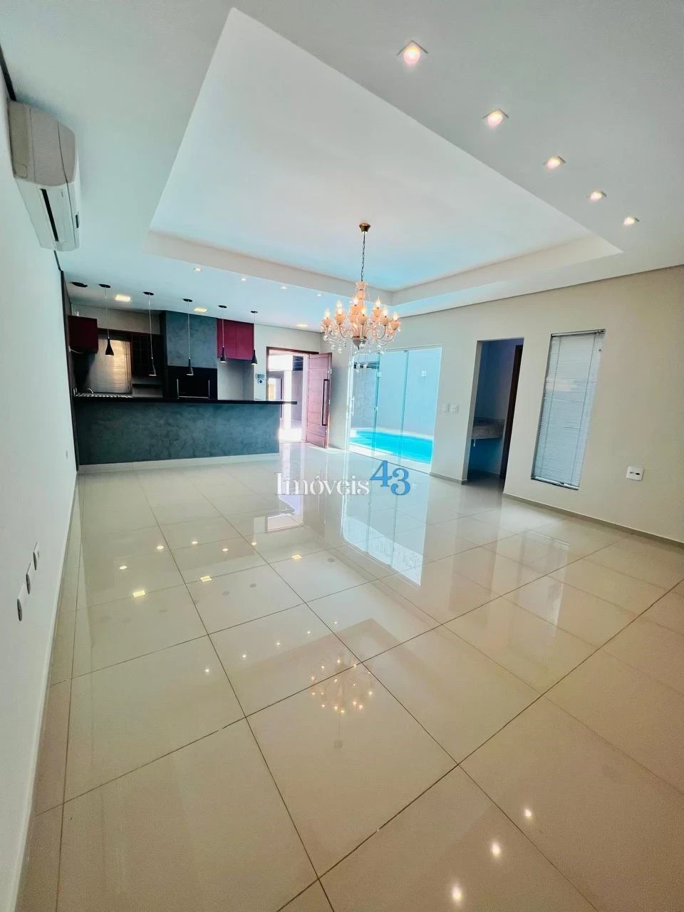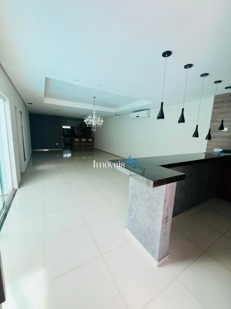 ✔ Sala ampla com porcelanato polido e com ar-condicionado de 24.000 Btus