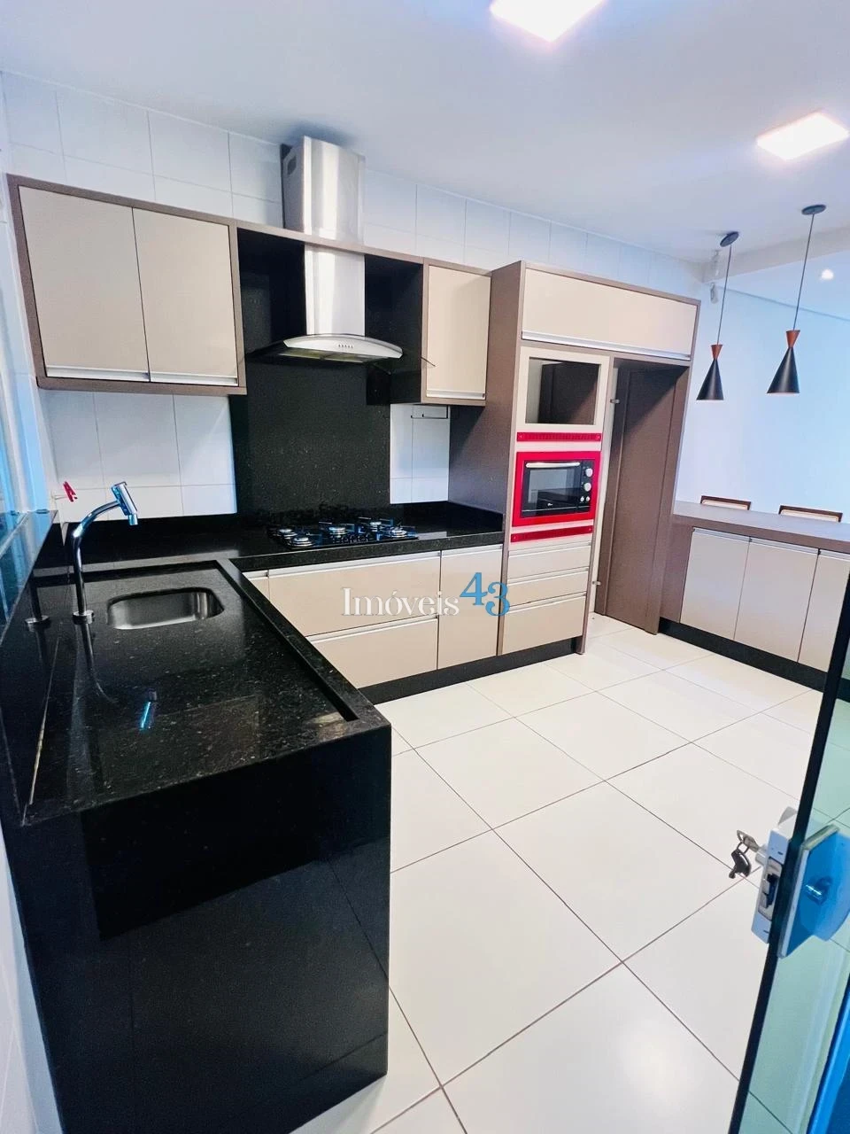 ✔ Cozinha moderna com armários planejados, fogão cooktop, exaustor e forno elétrico