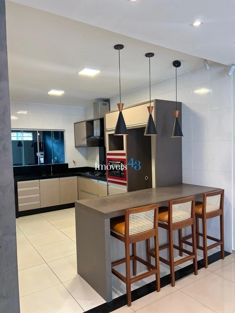 ✔ Espaço gourmet completo com churrasqueira , com bancadas em granito e armários planejados